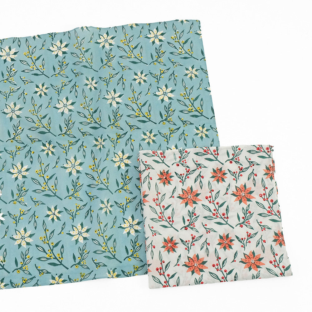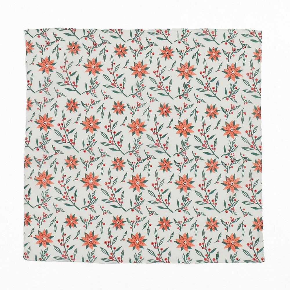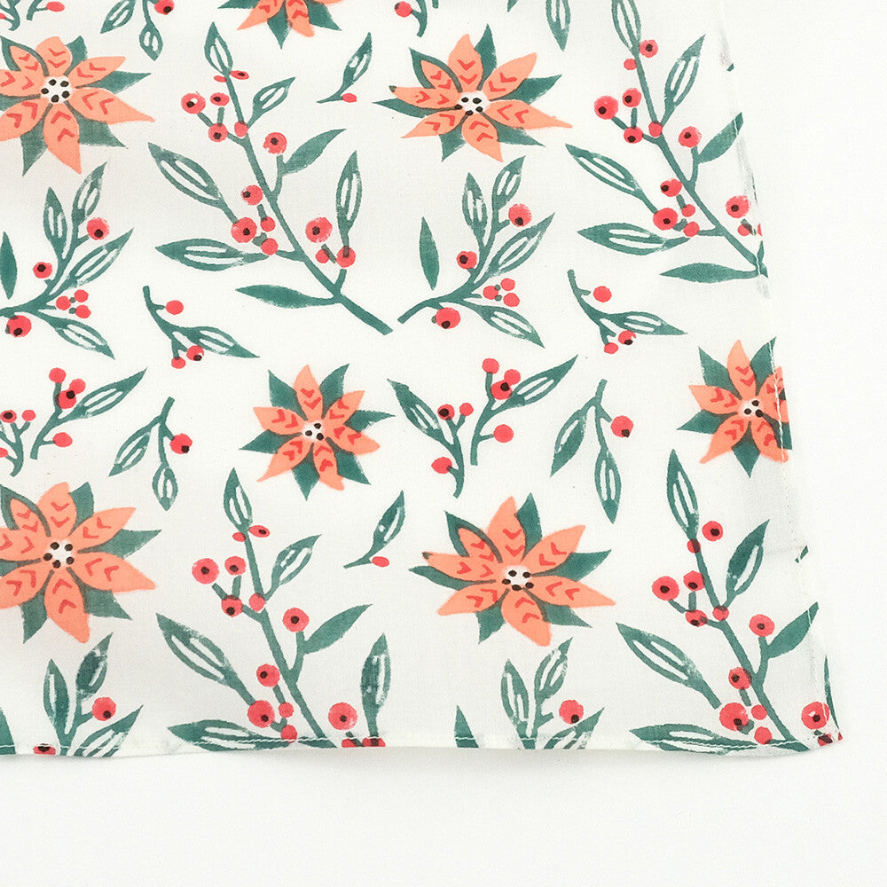 ポインセチア柄 インディアンブロックプリント ハンカチ:インド製