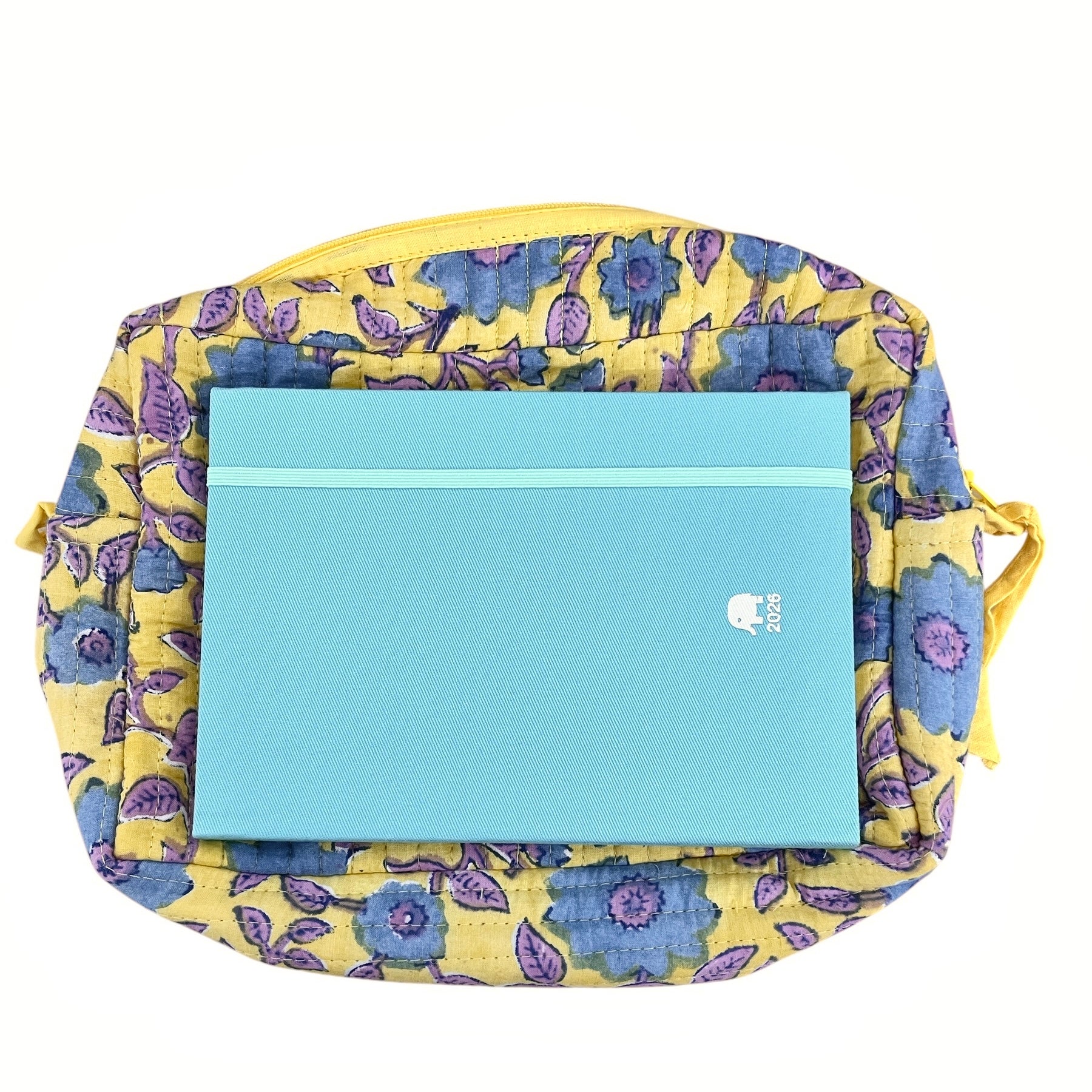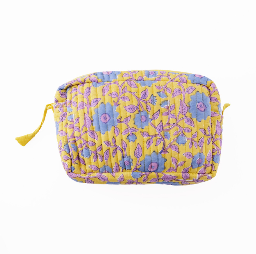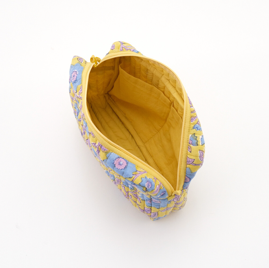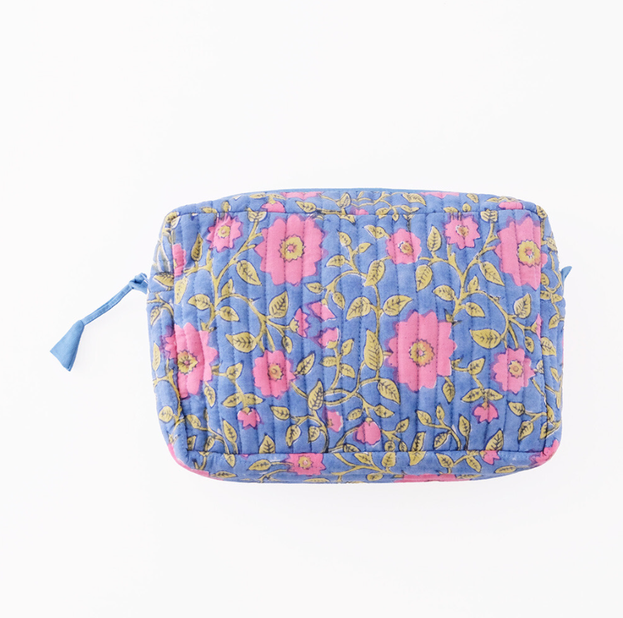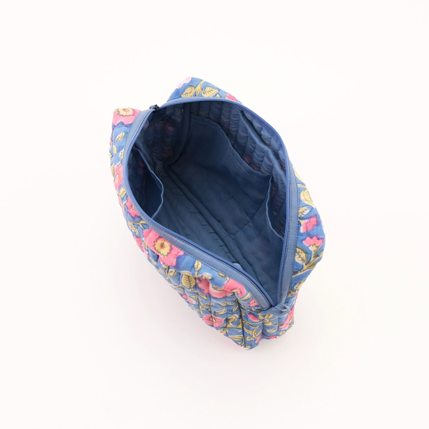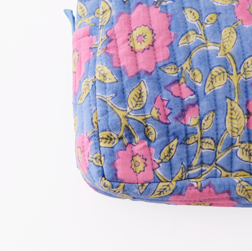 インド伝統のブロックプリントを使用したキルト大容量ポーチ